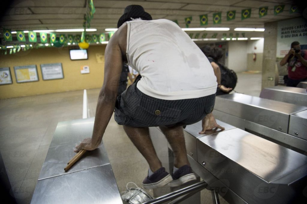 Cerca de dez manifestantes conseguiram pular e outros entraram na estação antes de ela ser fechada. A Polícia Militar (PM) chegou rapidamente à estação e impediu que mais pessoas pulassem as catracas. Houve um princípio de tumulto, rapidamente dispersado.