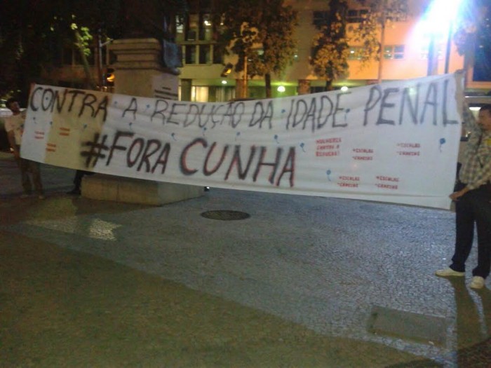 O objetivo dos participantes era protestar contra o fato do parlamentar ter feito a votação da redução da maioridade penal duas vezes, até que o texto da proposta fosse aprovada.