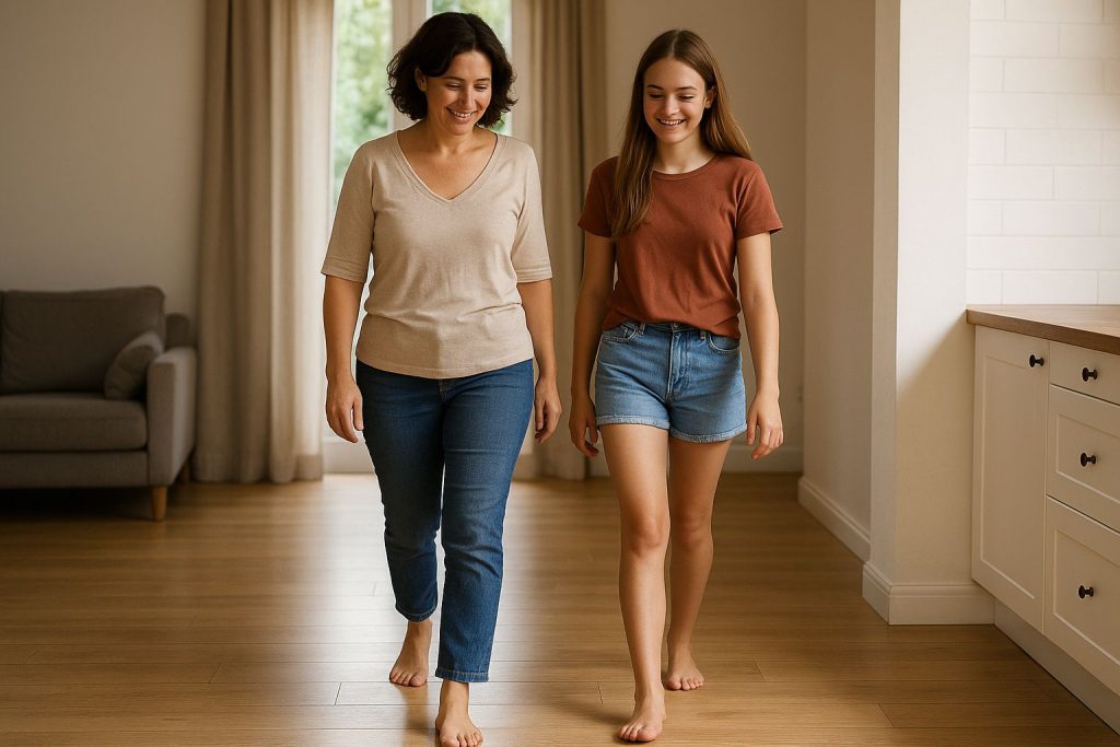 Eu e minha sobrinha Maria adoramos andar descalças. É quase um ritual nosso. Não sei bem como ou quando esse hábito começou, mas sei que é algo que nos faz bem.