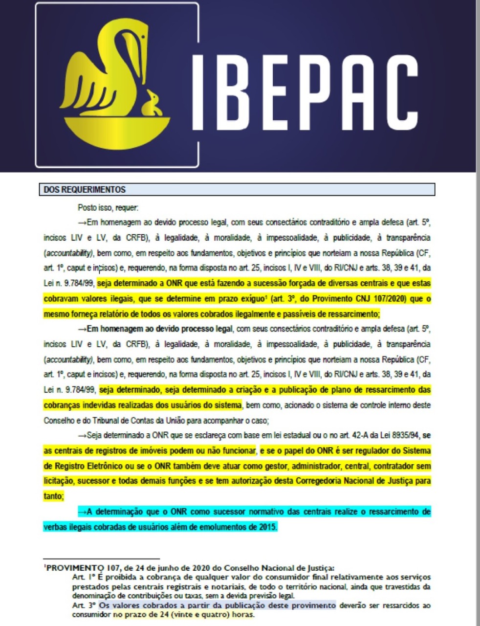 Além disso, no pedido de providências n. 0007679-46.2021.2.00.0000, a Rede Pelicano questiona, se o Operador Nacional do Sistema de Registro Eletrônico de imóveis irá suceder algumas Centrais nos prejuízos causados aos usuários pela cobrança irregular de emolumentos criados via ato administrativo, como ocorreu no Rio Grande do Sul, onde a desembargadora Denise Oliveira Cesar criou o Provimento n. 33/2018 e o IRIRGS, administrador da Central, cobrou pelos serviços e até agora os valores não foram devolvidos aos usuários de serviços extrajudiciais. E, pior, não se conhece a prestação de contas dos valores arrecadados.