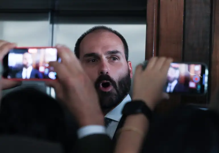 No centro de um dos maiores engodos da história política do Brasil, Eduardo Vaselina Bolsonaro em breve estará entre a pistola de Donald Trump, a vareta de Marco Rubio e o charuto aceso do sósia do brasileiro Kid Bengala, rufião que assumiu o controle da rede de prostituição de Heide Fleiss, atriz e produtora que ficou conhecida como Madame Hollywood. Ela foi uma das mais famosas proxenetas de Los Angeles nos anos 90. Além de dura, a tarefa do antigo Dudu das Quebradas não é das mais fáceis. Muito pelo contrário.