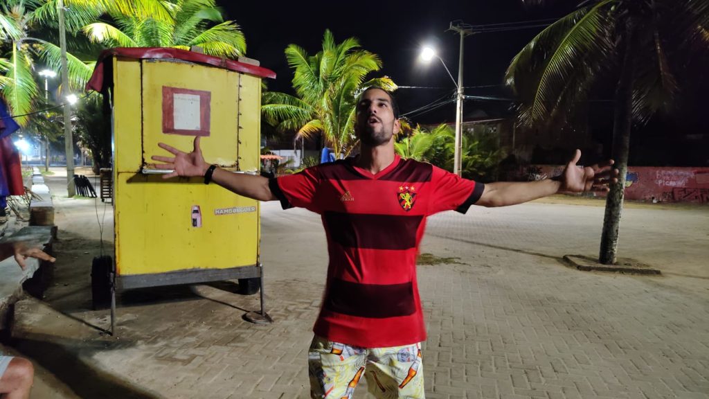 “Valeu, Iemanjá! Valeu, Zeus! Vocês são demais!”, gritava ele, enquanto os fogos iluminavam o Recife. À noite, de volta à sua praia, repetiu a cena, onde ele lembrou o apito final que consagrou o acesso.