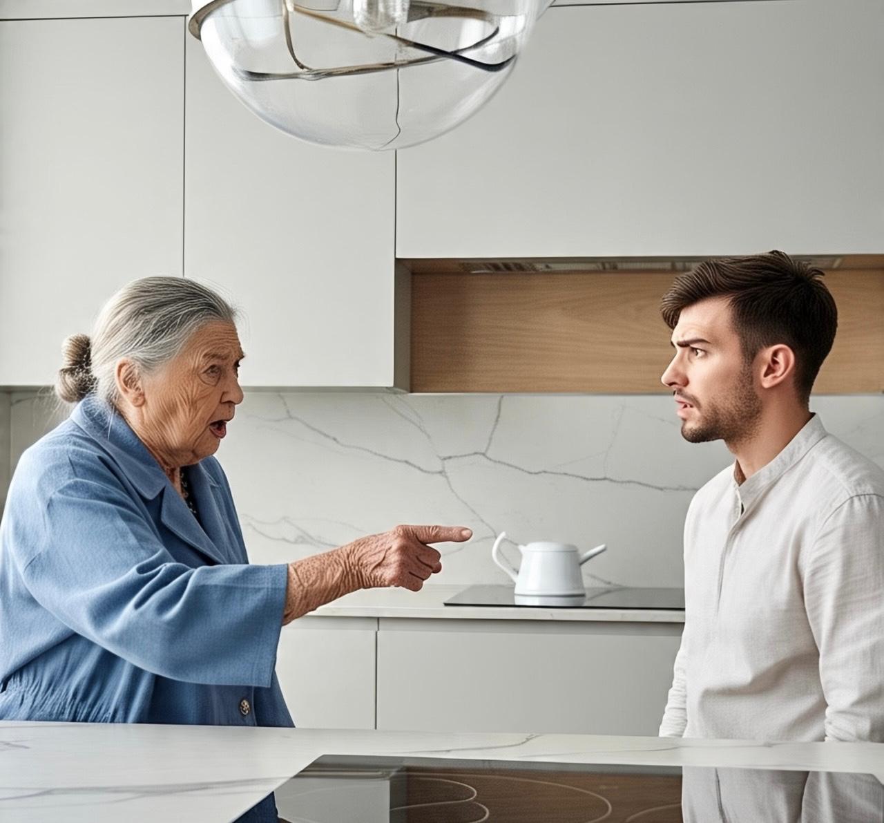 Ao mesmo tempo em que a velha repetia sem parar, ela apontava para os olhos do neto.