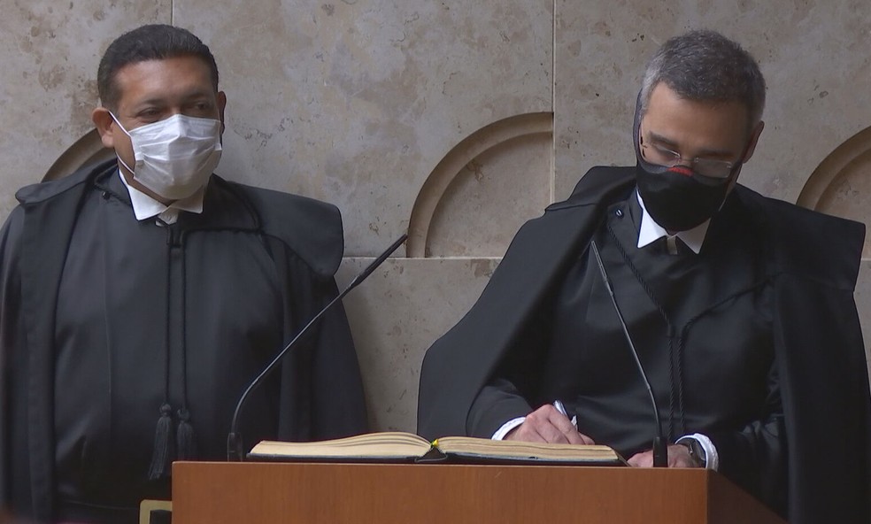 O ex-advogado-geral da União André Mendonça tomou posse nesta quinta (16) no cargo de ministro do Supremo. Indicado pelo presidente Jair Bolsonaro e aprovado pelo Senado, Mendonça ocupa a cadeira deixada pelo ministro Marco Aurélio, aposentado compulsoriamente em julho deste ano ao completar 75 anos de idade. Com a posse, a Corte volta a ter a composição completa, com 11 ministros. É a segunda indicação de Bolsonaro ao Supremo. No ano passado, o presidente indicou o ministro Nunes Marques para a cadeira de Celso de Mello, que também se aposentou.