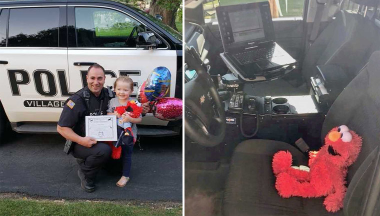 Uma garotinha deu de presente a um policial seu boneco Elmo, personagem do programa de televisão “Vila Sésamo”, para ele ter uma companhia e não trabalhar sozinho.