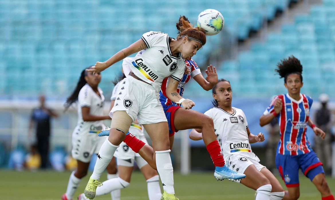O Botafogo abriu o placar contra o Bahia aos 41 minutos do primeiro tempo. Lançada pela lateral Bru, a atacante Kelen aproveitou a saída errada da goleira Nágila e mandou para o gol vazio. O time da casa, porém, igualou antes do intervalo. Nos acréscimos, aos 47 minutos, a meio-campista Eddie lançou a zagueira Anny, que ajeitou de cabeça para Ellen, na entrada da área. A atacante dominou e bateu no canto da goleira Rubi.