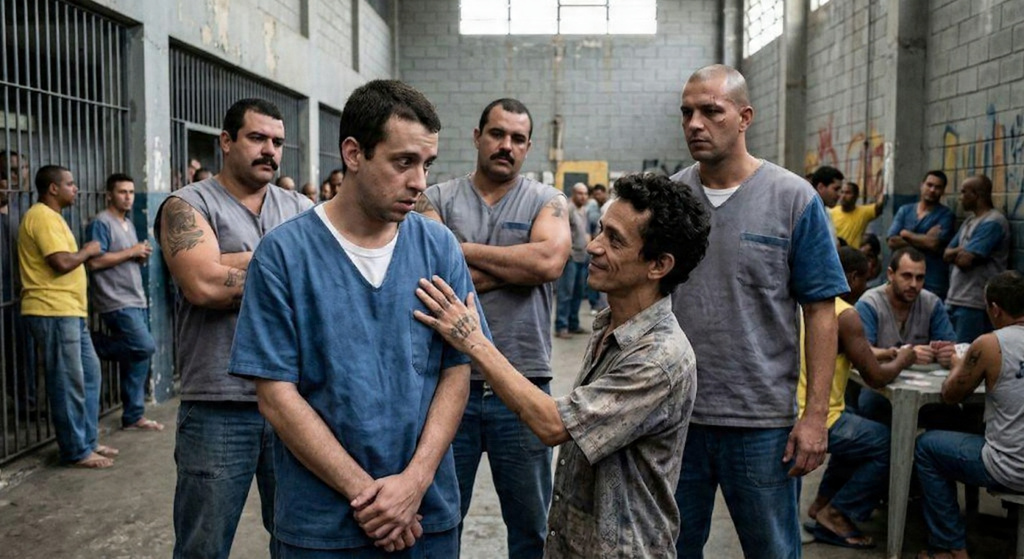 Na verdade, estava ali por conta de fraude bancária. Todavia, parece que meu intento funcionou, pois os sujeitos arregalaram os olhos e, em seguida, me puxaram para mais perto. Esdras, quase sussurrando, disse que iria me apresentar ao chefão do pedaço. Foi aí que percebi que nenhum dos dois comandava o presídio ou, ao menos, a parte que eu havia caído.