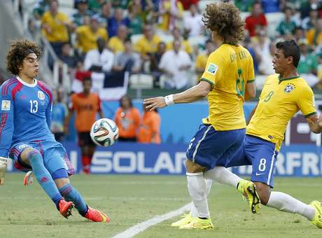 A primeira delas, ainda no primeiro tempo, foi a mais impressionante. Neymar cabeceou forte, à queima-roupa, e Ochoa se esticou para pegar a bola no canto direito. Na última, nos minutos finais, mostrou reflexo para defender cabeçada forte de Thiago Silva.