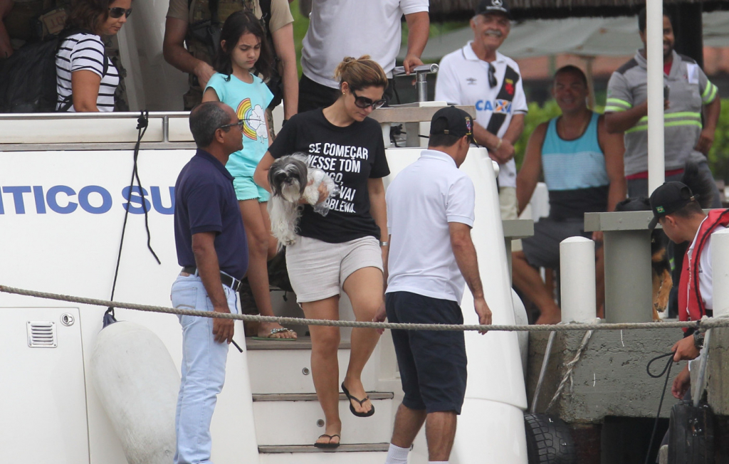 A futura primeira-dama, Michelle Bolsonaro, desembarcou em Itacuruça carregando o cachorro da família e vestindo uma camiseta com a frase que a juíza Gabriela Hardt disse ao ex-presidente Lula em seu primeiro depoimento na Justiça de Curitiba após Sérgio Moro deixar o caso para assumir um ministério no novo governo: “Se começar nesse tom comigo, a gente vai ter problema”. Michelle e as duas filhas estão voltando para o Rio de carro, depois de passar o Natal com o presidente eleito, Jair Bolsonaro, na Ilha da Marambaia, uma área de treinamento da Marinha, na Baía de Ilha Grande.