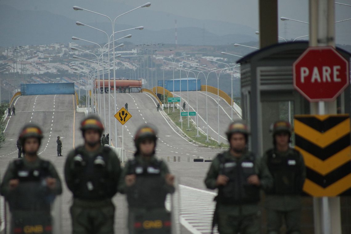 Militares reforçam uma espécie de bloqueio na ponte fronteiriça entre Venezuela e Colômbia. A ação ocorre no momento do impasse entre o presidente venezuelano, Nicolás Maduro, e o interino, Juan Guaidó. O interino promove uma campanha internacional para angariar ajuda humanitária.