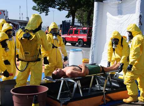 As Forças Armadas simularam nesta quarta-feira um ataque químico na Arena Corinthians, o Itaquerão, na capital paulista, estádio que vai sediar a abertura da Copa do Mundo na próxima semana. Cerca de 100 militares do Exército e 80 homens do Corpo de Bombeiros, Serviço de Atendimento Móvel de Urgência (Samu) e da Defesa Civil participaram da simulação, último treinamento para esse tipo de ocorrência antes da abertura do evento .