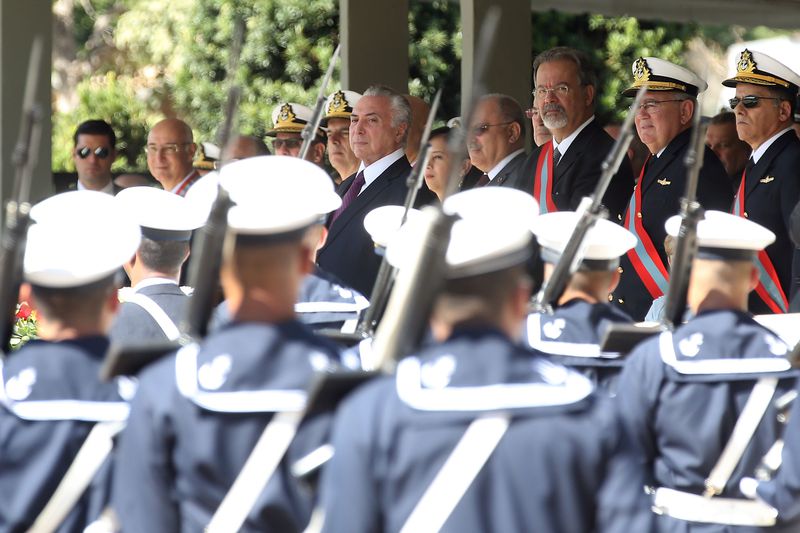 Na solenidade, Temer ouviu “toque da Vitória”, saiu sem falar com a imprensa, deixando para o ministro da Defesa, Raul Jungmann, falar em nome do governo. Ao ser questionado se acreditava que o peemedebista chegaria ao final do seu mandato, o ministro respondeu que, “constitucionalmente ele tem esse direito”.