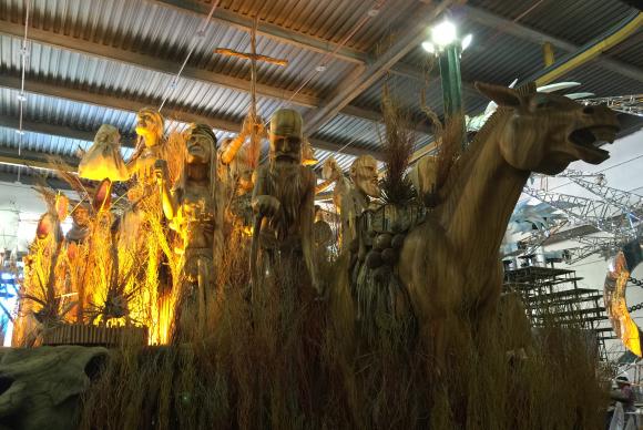 Dificuldades – Louzada revelou que por causa da alta do dólar e da crise econômica do país, a escola, como tantas outras, enfrentou a falta de importação de produtos, entre eles pedrarias e galões que fazem o enfeite de fantasias. Ele adiantou que não foi preciso substituir muitos materiais, mas que em algumas alegorias se valeu dos alternativos. “Já fizemos um carnaval pensando um pouco na crise”. Um exemplo é o carro número 5, chamado de Sacra Insurreição. Ele vem em um setor que lembra escritores como Graciliano Ramos e é um réquiem à Guerra de Canudos para destacar os problemas que, ainda hoje, o Nordeste enfrenta.