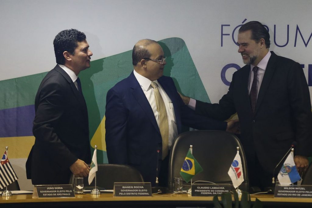 Ibaneis afirmou que é preciso abrir um espaço de diálogo e que “não adianta vir com fórmulas prontas para segurança sem ouvir”. Ibaneis disse que os governadores presentes apresentaram demandas sobre segurança a Sérgio Moro e que algumas delas foram acatadas.