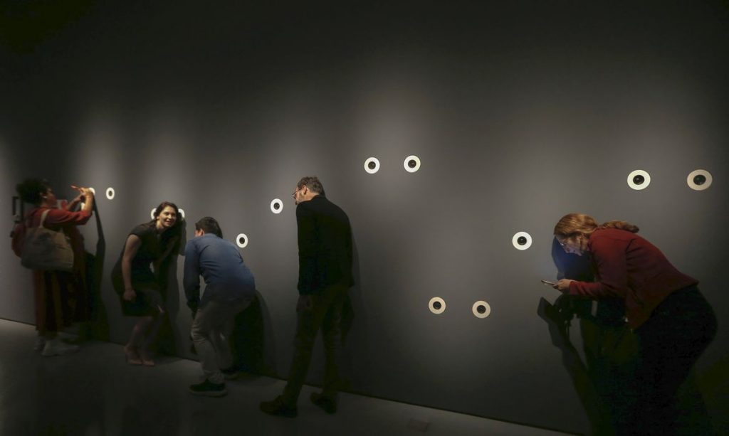 Mas a exposição tem início antes dessa sala. Já ao entrar no elevador, o público vai ouvir uma intervenção sonora, também criada por Alê Siqueira, e que reúne cantos famosos como Ôôôôô, Ilariê, Aê-aê-aê, que se unem para formar uma única canção.