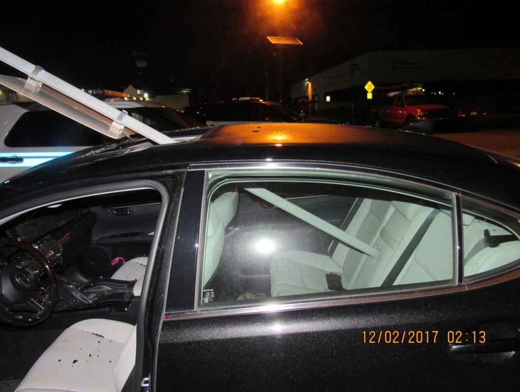 O policial disse que a placa poderia ter ferido ou matado a motorista. Aparentemente, ela bateu com o carro na placa sem perceber. A motorista foi presa e vai responder por direção descuidada e por dirigir sob influência de substâncias.