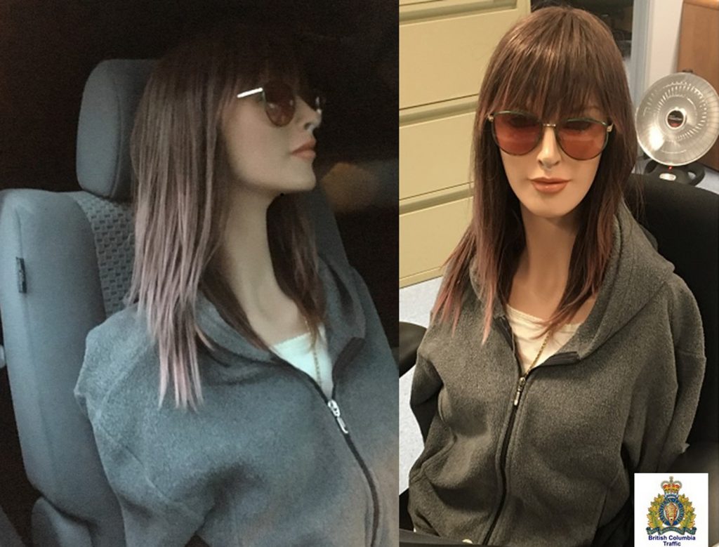 A polícia montada do Canadá flagrou um motorista de van que estava com um manequim no banco do passageiro para usar a “faixa da carona”.