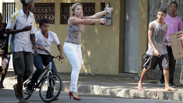 Conforme noticiado pelo site de O Globo, uma cena chamou a atenção de quem passava pela Avenida Leopoldo Bulhões, na altura da Favela do Jacarezinho, na Zona Norte do Rio, na manhã desta sexta-feira, logo após o tumulto em que se transformou a desocupação de um terreno da Oi no Engenho Novo, também na Zona Norte. Depois de passar por um trecho da via onde havia um ônibus em chamas, uma loira saltou de um carro, arma em punho, para conter um grupo que saía da comunidade. Ela se identificou como policial e impediu, sozinha, que os jovens seguissem caminho, pois suspeitava que fossem realizar depredações – um deles tinha pedras nas mãos.