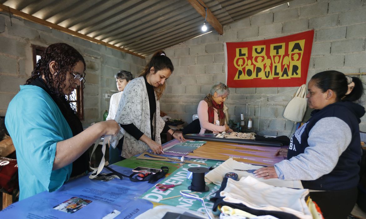 Em 2021, Mara perdeu o emprego de cozinheira e, no mesmo ano, por meio de iniciativa do Movimento Luta Popular, do qual é integrante, ajudou a montar uma oficina de costura no terreno da ocupação. “A costura está sendo bem importante porque, além de aprender uma profissão que eu nunca imaginei que aprenderia, ter uma renda através dessa nova profissão que eu tenho agora é muito bom mesmo”, opina.