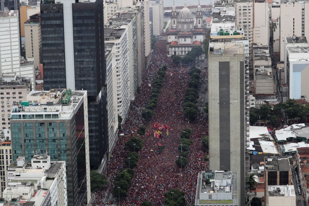 A multidão tomou praticamente todo o trajeto planejado para o desfile da vitória, desde a Igreja da Candelária até a estátua de Zumbi, próximo ao Sambódromo.