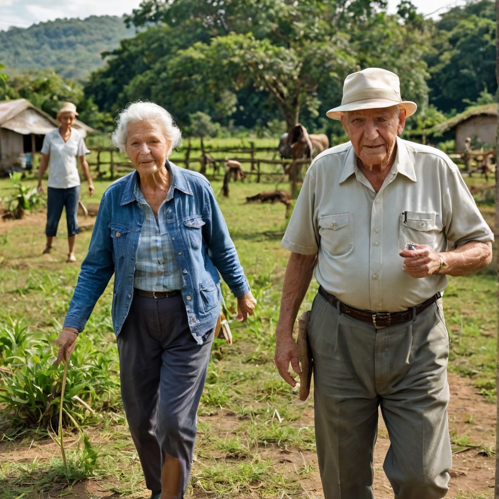 aposentado, trabalhando na recepção e apoio ao fazendeiro transitava por ali, e percebeu as senhoras, entendeu que elas queriam jabuticaba e rapidamente veio correndo, com uma vasilha, abriu a saia da árvore e começou a subir.