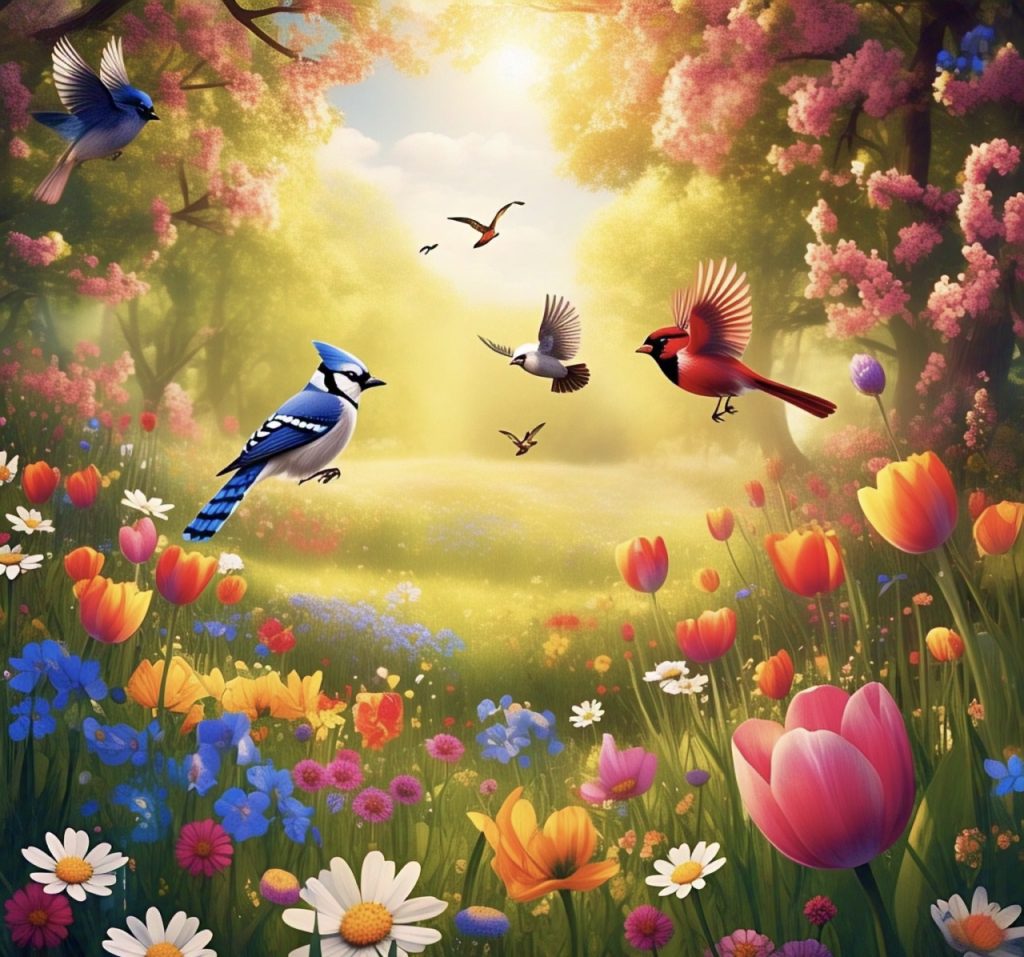 Assim chega a primavera, repleta de cores e aromas doces. Nos dias de sol, irradia canções; nos dias nublados, os versos se escondem em cada canto da alma.