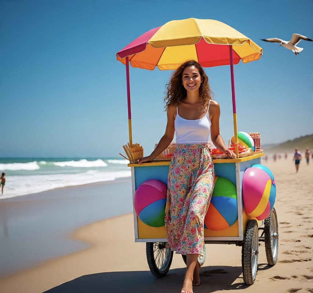 E não sei vocês, mas, para nós praia, é um atrativo para comida e bebida, o famoso picolé é um chamariz, produto consumido diariamente.