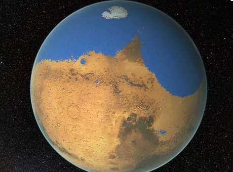 Marte, o planeta vermelho, tinha ao menos metade do hemisfério norte coberto de água, com um oceano que chegava a mais de 1,5 quilômetros de profundidade, segundo revelou a Agência Espacial americana. As informações são do The Independent.
