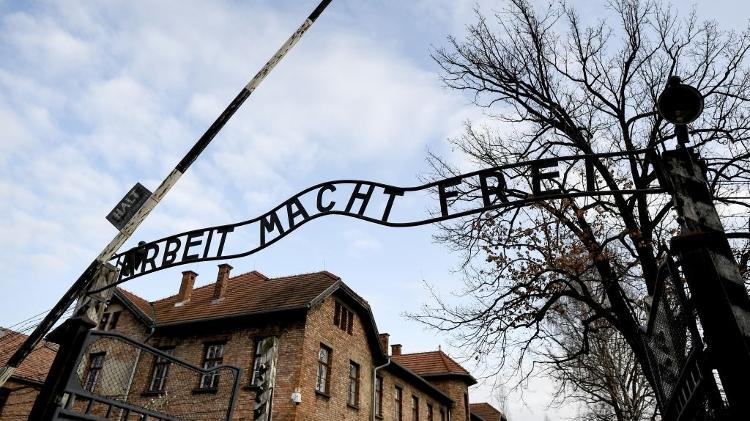 A frase “O trabalho liberta” (“Arbeit macht frei”, em alemão), lembrou o UOL, ficou conhecida por estampar as entradas de diversos campos de concentração do regime nazista, durante a Segunda Guerra Mundial. Em Auschwitz, por exemplo (é o que mostra a foto que ilustra este texto), a inscrição foi feita no portão por prisioneiros com habilidades metalúrgicas.