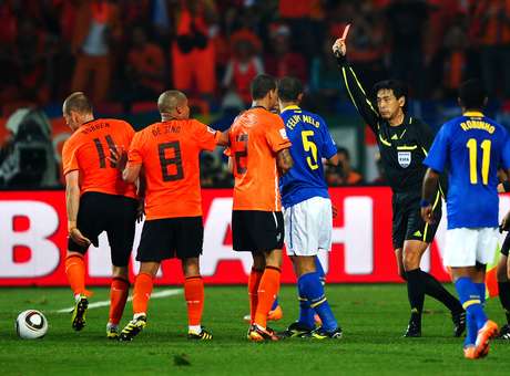 O árbitro é mesmo que foi escalado para o jogo da Seleção Brasileira contra a Holanda, nas quartas de final, do Mundial de 2010, quando a equipe de Dunga foi derrotada por 2 a 1e acabou eliminada da competição. Naquela partida, Nishimura expulsou o volante Felipe Melo após pisão em Robben e recebeu inúmeras críticas dos brasileiros ainda durante a partida.