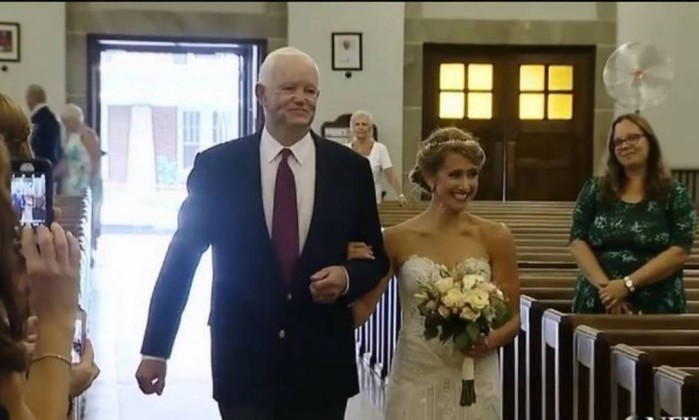 Noiva é levada ao altar por homem que recebeu coração do pai dela em transplante