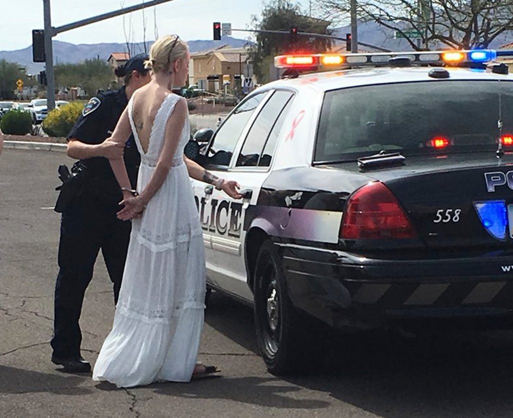 Uma noiva foi presa na segunda-feira (12) ao se envolver em um acidente de trânsito quando dirigia a caminho do próprio casamento, segundo a polícia. O caso ocorreu em Marana, próximo a Tucson, no estado do Arizona.