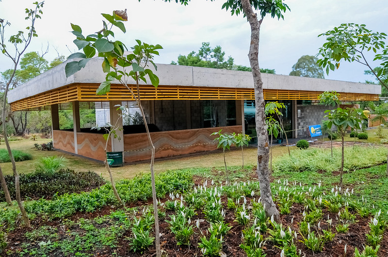 Próximo ao anfiteatro, o novo restaurante tem capacidade para atender 100 pessoas e foi erguido com a técnica construtiva taipa de pilão, método milenar capaz de regular a temperatura interna da edificação e criar estruturas totalmente sólidas.