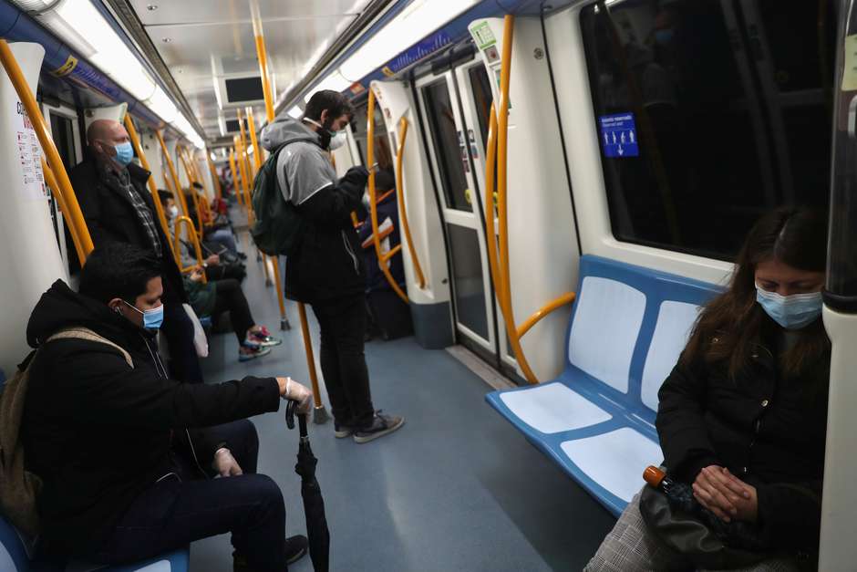 Pessoas presentes em grandes polos de transporte receberam máscaras da polícia ao irem trabalhar na manhã desta segunda-feira. “A saúde dos trabalhadores precisa ser garantida. Se isto for minimamente afetado, a atividade não pode recomeçar”, disse o ministro do Interior, Fernando Grande-Marlaska, à rádio Cadena Ser.