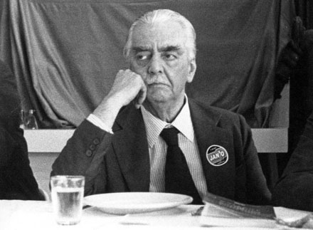Até que o candidato não mais suportou a secura.Pegou um drinque na bandeja e entornou uma dose. Outra e mais outra. A candidatura presidencial acabou ali mesmo, com a língua enrolada de Jânio contando casos engraçados de si mesmo ,numa jornada de autopiedade.