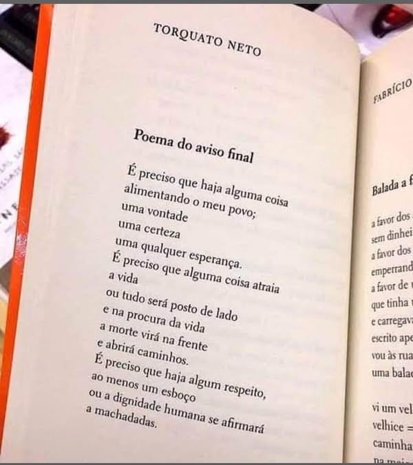 < Os versos de POEMA DO AVISO FINAL, escrito em 1970, em plena ditadura brasileira é brilhante e premonitório.