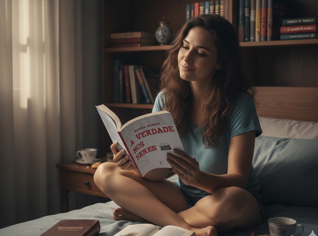 Quase desistindo, eis que vi debaixo da porta um envelope. Hum! Pelo volume parecia algo substancial. Nada de contas e contas a pagar. Tomei-o em minhas mãos e logo percebi que a remetente era a minha grande amiga Sarah Munck, poetisa das melhores. Curiosa, abri o envelope e me deparei com o livro ‘A verdade nos seres’, de Daniel Marchi. Folheei e li a dedicatória.