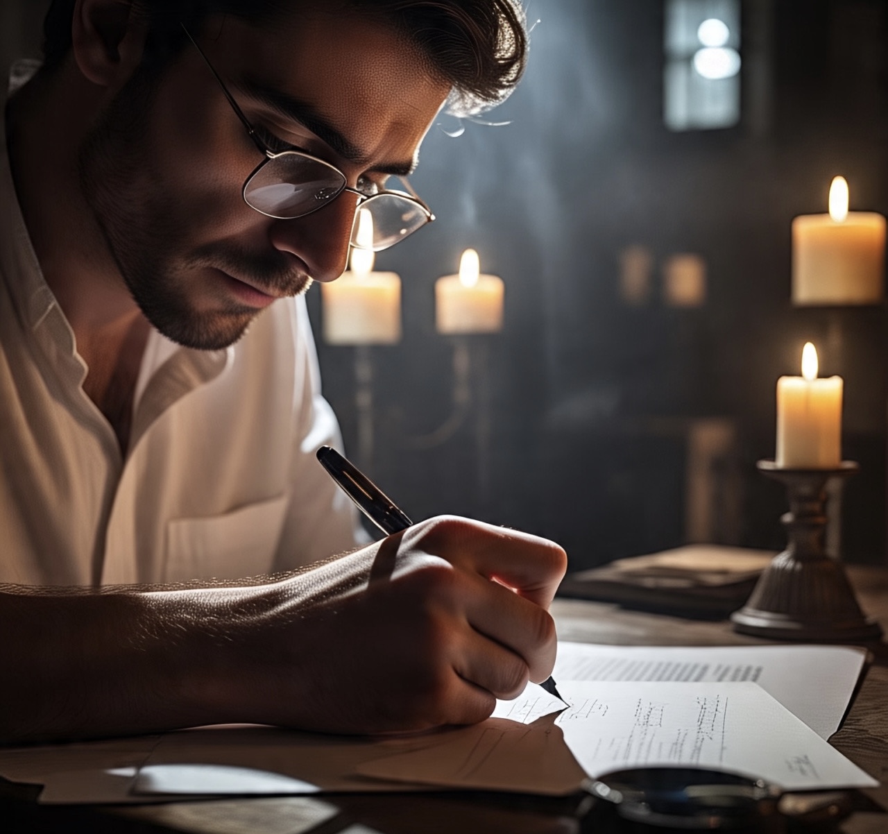 Preparou o ambiente, iluminando com velas o quarto onde escrevia. Um pouco século XIX, reconheceu, mas não chegou ao ponto de utilizar uma pena. Tampouco fez concessões ao século XXI: nada de computador.