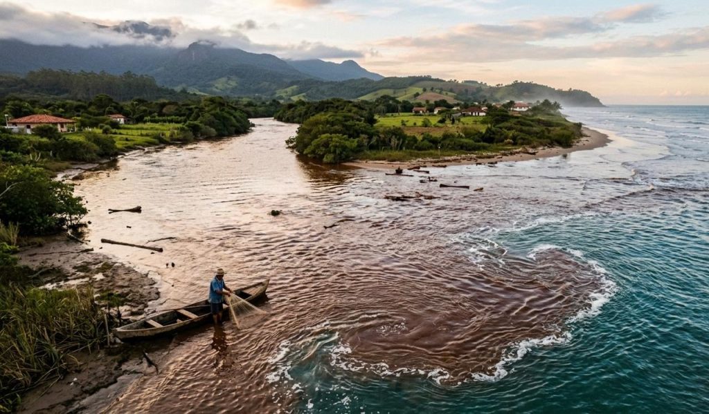 No fim do caminho, quando o mar aparece no horizonte como um espelho maior, o rio hesita um instante. A água doce dança com a salgada, forma redemoinhos, listras verdes e azuis que não se misturam de imediato. É o encontro das águas — um abraço demorado, quase tímido. O rio entrega tudo o que trouxe: barro, peixe, folha, história, lágrima de alguém que chorou na margem anos atrás. O mar aceita, engole, transforma. E o rio deixa de ser rio pra virar parte de algo infinito.