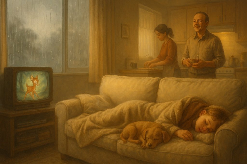 Ser recebido por você, mãe, na cozinha, dizendo que estava fazendo o almoço, enquanto me faz, por carinho, uns biscoitos com manteiga e um Nescau. Meu pai, na sala, lê um livro, me recebe com bom dia e mostra o que fez de manhã. Enquanto isso, na TV, passa algum filme da Disney, talvez Bambi, enquanto a sinfonia leve ecoa pelo cômodo. Lorena está dormindo no sofá, porque levantou mais cedo só para dizer que acordou antes de mim, mas não resistiu ao despertar abrupto e se rendeu ao sonhar. Ela é tão pequena. Cabe em um pedaço do braço do sofá.