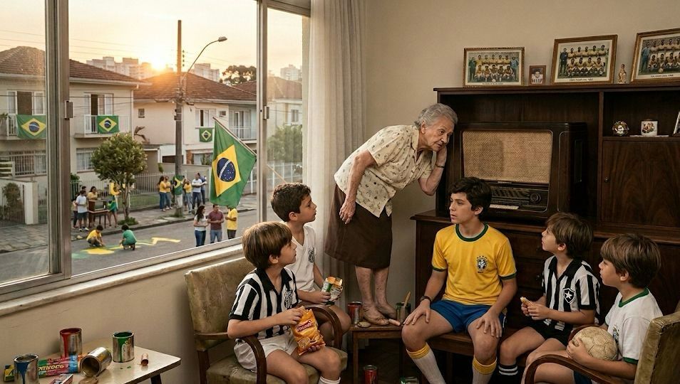 Com o passar dos dias a euforia ia se intensificando até que uma verdadeira explosão de alegria tomou conta de todos; agora o som, até então restrito ao ambiente delimitado pelas paredes da casa, extrapolava para a rua. Nós, crianças, acompanhávamos pelo lado de dentro do portão: Brasil campeão mundial!