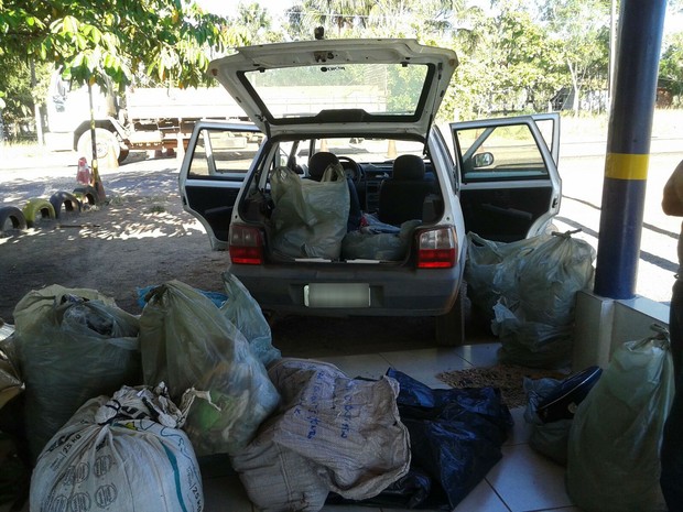 Os policiais foram atraídos pela grande quantidade de roupas e cosméticos no interior do veículo. Duas pessoas estavam no carro.