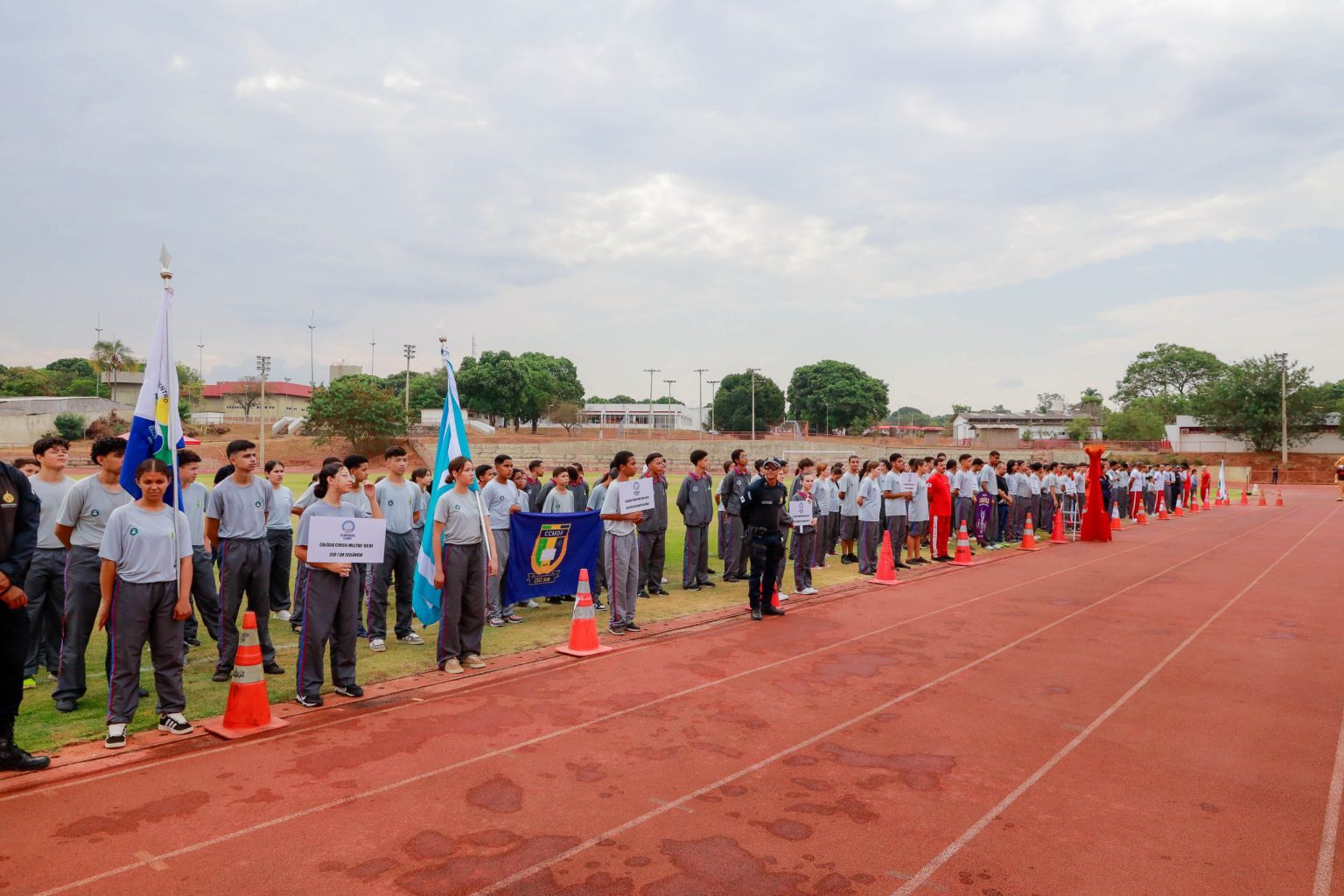Ensinar valores que vão muito além de ganhar prêmios. Esse é o principal objetivo das olimpíadas dos colégios cívico-militares do Distrito Federal. A abertura dos jogos, que contará com a participação de 2 mil estudantes de 17 escolas, foi nesta terça-feira (8), no Centro de Capacitação Física do Complexo da Academia de Bombeiro Militar (Cecaf-ABMIL/CBMDF). Os estudantes irão competir em sete modalidades – atletismo, basquete, futsal, vôlei, queimada, handebol e xadrez. Independentemente de quem serão os vencedores, todos levarão para a vida valores como disciplina e respeito.