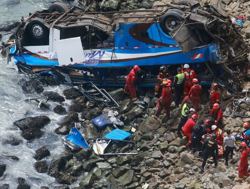 O acidente ocorreu pela manhã na “curva do diabo” da rodovia Pasamayo, 45 km ao norte de Lima. “São ao menos 25 os mortos e 5 os feridos encontrados até o momento”, disse à imprensa o coronel Dino Escudero, chefe da Divisão de Controle de Estradas da Polícia.
