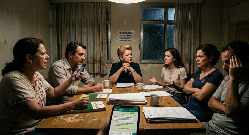 Em consequência do aparente fracasso contra a cessação da validade da Constituição Federal nos domínios condominiais, o grupo de vizinhos no whatsapp teve assunto para “diálogos” que assim se passaram: