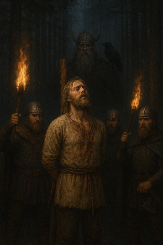 Os rituais de sacrifício, conhecidos como blót, podiam variar de simples oferendas de cerveja e carne até práticas muito mais sangrentas. Quando se tratava de Odin, o culto exigia algo maior: a vida. Homens, prisioneiros de guerra e até animais eram entregues ao deus em cerimônias que ocorriam em bosques sagrados ou templos de madeira.