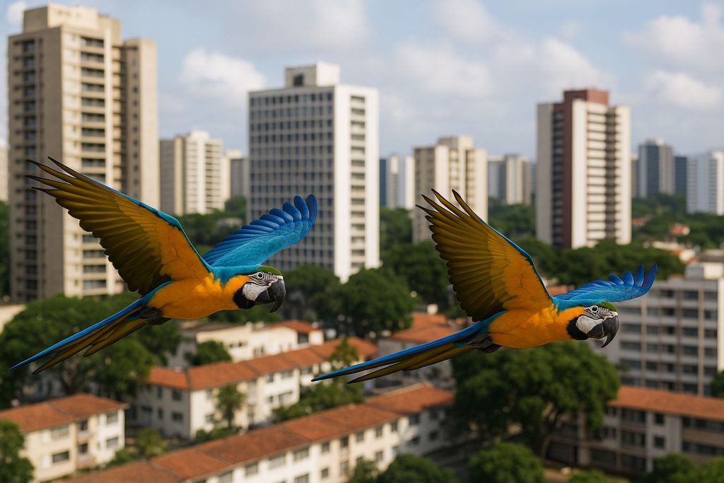Os animais têm esse efeito sobre mim. Basta ver um cachorro brincando, um pássaro cantando ou essas araras cruzando o céu, para que meu ânimo mude. É como se, de repente, o mundo lembrasse que ainda há beleza, leveza e vida pulsando ao redor. E isso, para mim, é um privilégio. Talvez um dos maiores que se possa ter dentro de uma cidade.