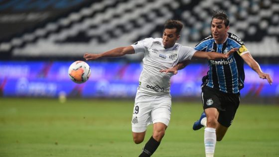 Um gol de pênalti, nos acréscimos do segundo tempo, salvou o Grêmio de um tropeço em casa diante do Santos, no primeiro duelo do confronto pelas...