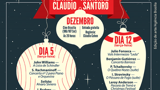 Dois concertos gratuitos integram a programação da Orquestra Sinfônica do Teatro Nacional Claudio Santoro em dezembro. Na terça-feira (5), às 20 horas, os músicos sobem ao...