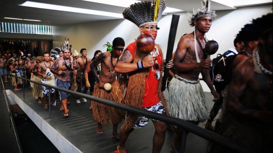 Débora Brito Um grupo indígena foi impedido de entrar hoje (18) na Câmara dos Deputados para participar de audiência pública sobre produção agrícola em terras ocupadas...
